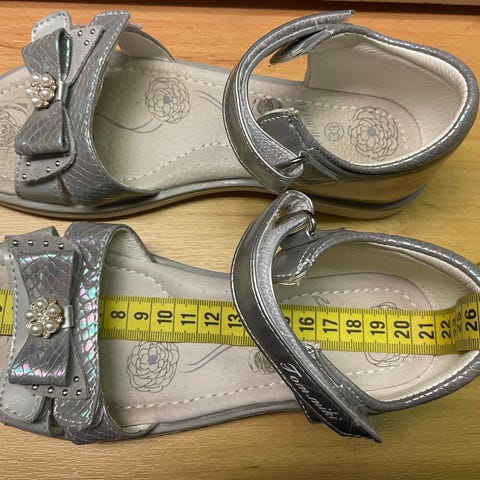 Tytöt sandaalit valkoisena, koko 35. Sandaaleissa on säädettävä tarrakiinnitys ja koristeelliset kukkakoristeet päällä. Pohjassa kuvioitu kumipohja, joka tarjoaa pitoa. Materiaali on nahka.