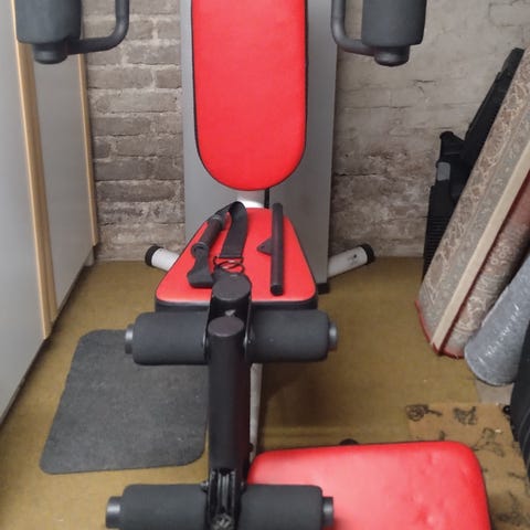 Hyväkuntoinen, erittäin vähällä käytöllä ollut Weider Pro 490DC monitoiminen painonnostopenkki, levytankosarja, levypainoteline, vino-/vatsapenkki sekä levypainot 20 kg, 15kg, 10kg, 5kg ja 2,5kg. Sopii kotikäyttöön lihaskuntoharjoitteluun ja painonnostoon.