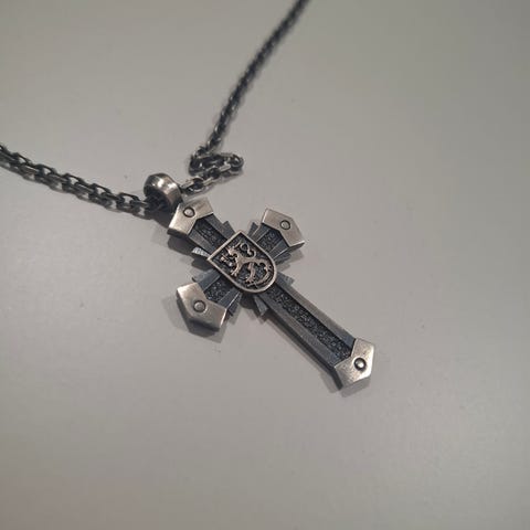 Lumoava 1917 Risti-riipus valmistettu hopeasta. Riipus on unisex-malli, jossa on koristeellinen risti ja ketju. Sopii käytettäväksi kaulakoruna. Ristin korkeus 42mm ja leveys 22mm. Ketjun pituus 50cm