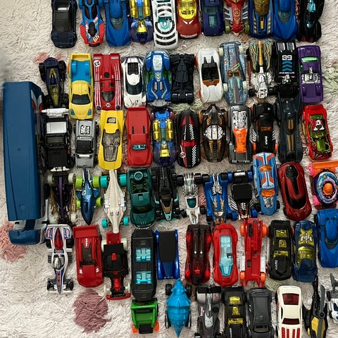 113kpl eri kuntoisia (kuntoluokituksena hyvä, kun joku piti valita) pikkuautoja/ajonuvoja, jotka kaikki kuvassa, pidätän oikeuden laskuvirheeseen 😊. Hot wheelsejä reilusti. Nuo ei ajoneuvot jotain Hotwheels-joulukalenterista tullutta sälää. Kaikki yhteensä 50€. MMM, ekalle, vain haku. Keskustassa.