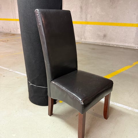 Keinonahkainen tuoli metallisilla jaloilla, tukeva runko. Kunto hyvä. Joko nouto tai kuljetus Jyväskylän alueella korvausta vastaan.