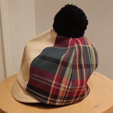 Kirkkaan keltainen kombai hattu ja kaksi tupsua, tummansininen ja turkoosi. Koko L, 60cm. Hyvin vähän käytetty.
