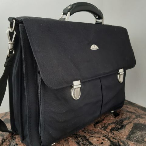 Musta kovakantinen Samsonite merkkinen asiakirjasalkku lukolla. Hyvin siisti kuntoinen.