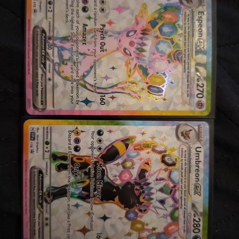 Ostetaan espeon ja umbreon promot mint kunnossa, hinnat cardmarketin mukaan.