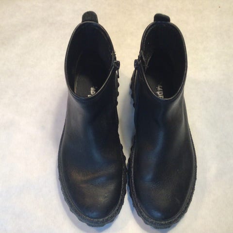 Vain muutaman kerran käytetyt Camperin paljasjalkaystävälliset nilkkurit. Materiaali aitoa nahkaa, väri musta. Superkevyet, pehmeät ja mukavat, reilu varvastila. Vetoketju sisäpuolella ja pieni joustinosio takana.