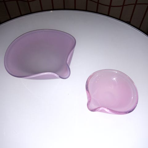 Myynnissä myös pienempi näkinkenkä ja muita vaaleanpunaisia taidelaseja.