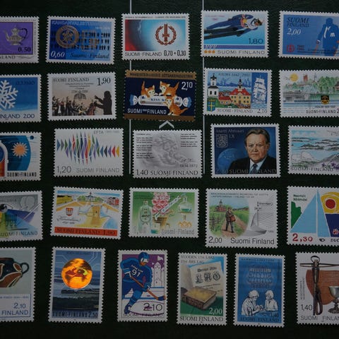 Kuvan 23 erilaista postituoretta Suomalaista postimerkkiä yhteishintaan vain 6 euroa + postitus kirjetaksan mukaan (2,75). Katso muutkin edulliset kohteeni, postitus samoilla kuluilla!