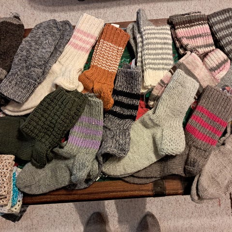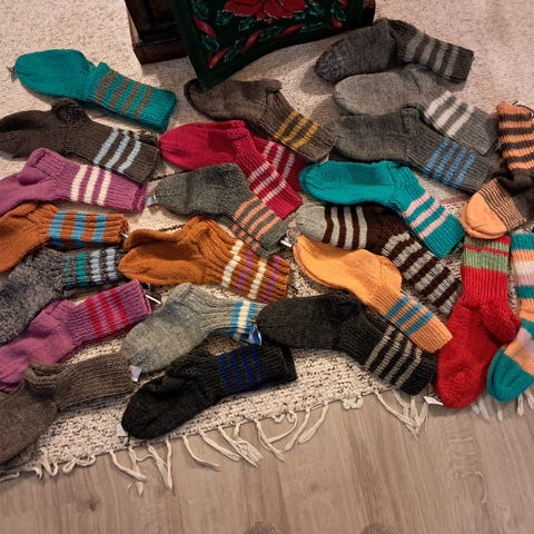 Lapsille / pieneen jalkaan sopivia villasukkia. 5€/pari.