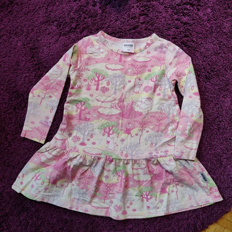 Muumi tunika, jo enempi käytetty ja nukkaa tähän kertynyt. Joitakin pieniä tahroja voi olla. Kuitenkin ehjä ja vielä käyttökelpoinen.