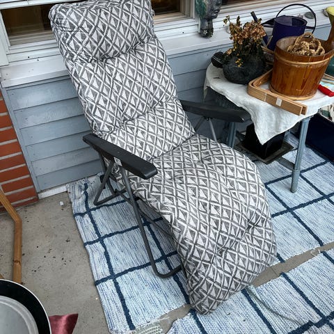 Valkoinen ulkopöytä, jossa lasipintainen kansi. Sopii ulkokäyttöön, runko metallia. Vähä ruostetta rungossa. Pöydän koko 85x200cm K75cm.