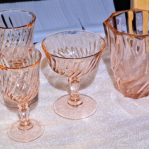 6kpl Rosaline pink viinilaseja. Käyttämättömät, ehjät. Säilytetty vitriinissä.