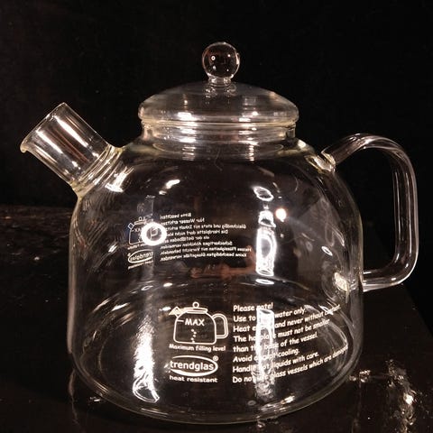 Lasinen teepannu, valmistettu läpinäkyvästä lasista. Pannussa on pyöreä muoto, lasinen kansi, ja kädensija. Soveltuu teen valmistukseen ja tarjoiluun. Läpinäkyvä materiaali mahdollistaa teen värin ja vahvuuden seuraamisen. Suunnittelijana Wilhelm Wagenfeld vuonna 1931.