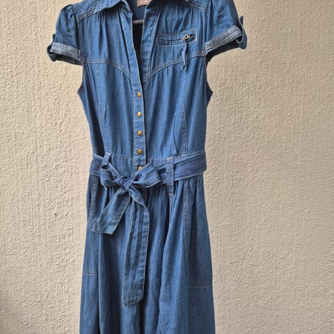 Tom Tailorin koon 36 tummansininen mekko. Edessä laskostukset ja selässä rusetti. Hyvässä kunnossa, mutta hieman ryppyjä säilytyksestä.