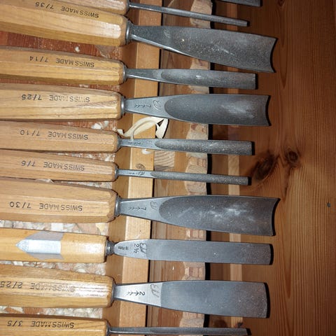 Laadukkaat taltat, joissa taotut ja karkaistut terät.