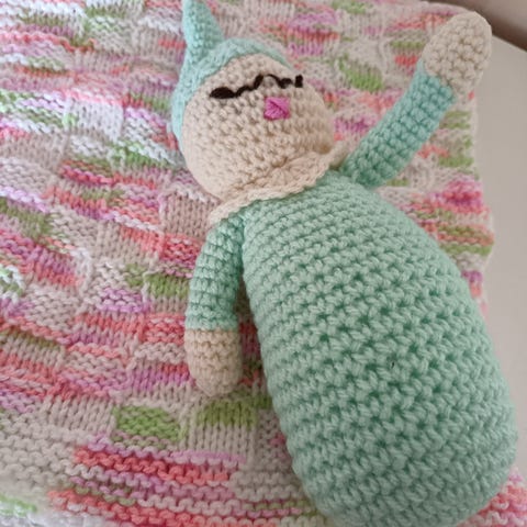 Vauvalle neulottu peitto vaikka kaukalo peitoksi. 60x70 koko