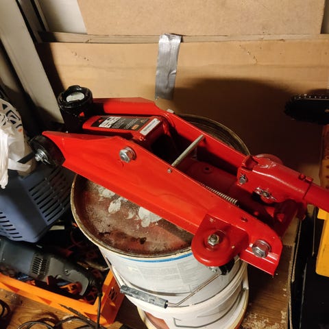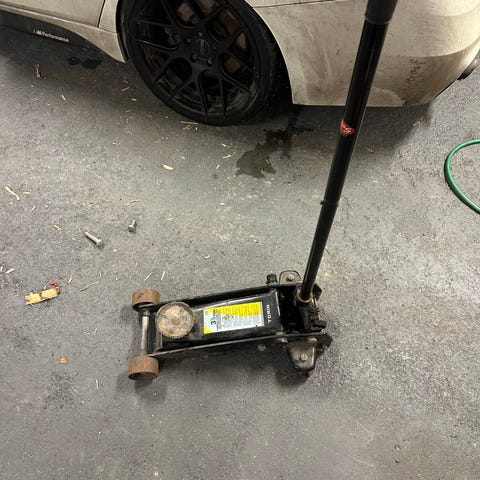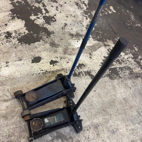 Henkilöauton renkaiden vaihtoon sopiva tunkki.