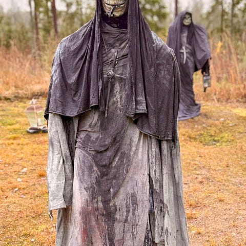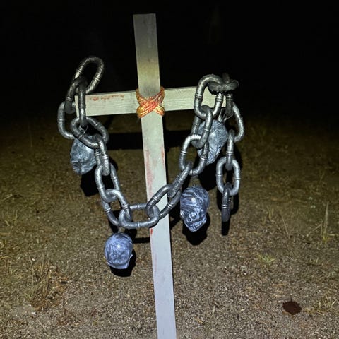 Halloween ruumisarkku, ketjulla ja valo kranssi. Vain haku.