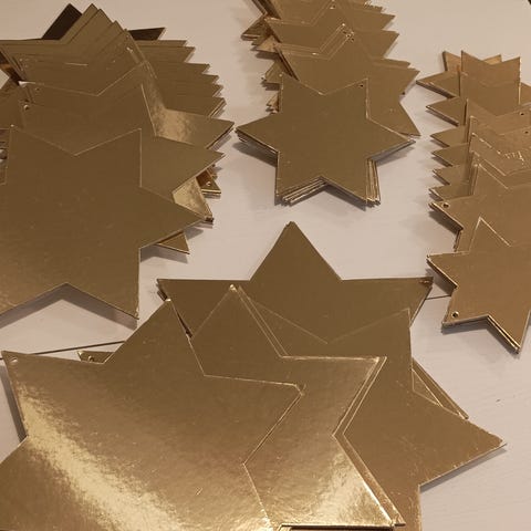 2 kpl joulukuusen kullan värisiä tähtiä koko 25 cm halkaisija.