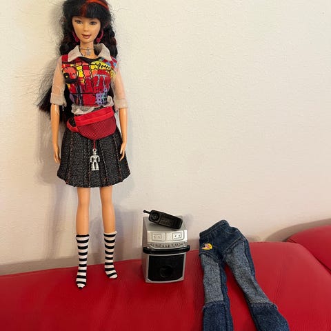 Kuvan mukaisessa kunnossa oleva Barbie Generation Girl Dance Party -nukke vuodelta 1999. Housut ovat rispaantuneet, kuten kuvista näkee.