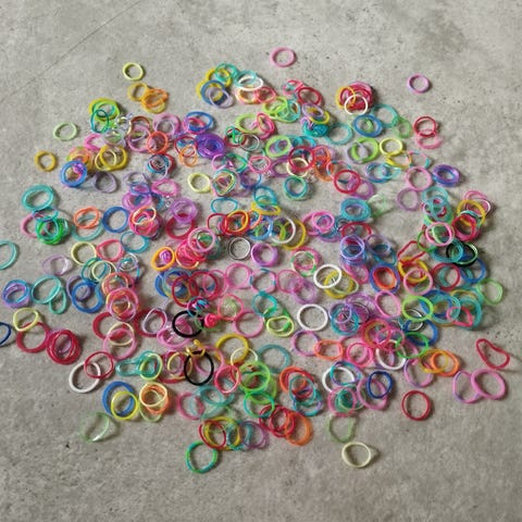 Myydään kuvien salkku kuminauhakorujen tekoon. Osa kuminauhoista käytetty, paljon vielä jäljellä!