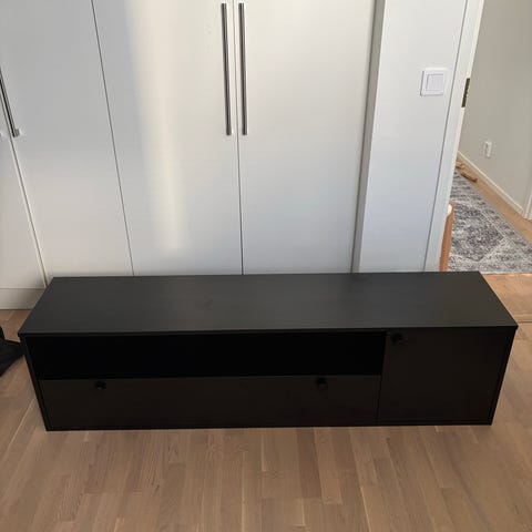 Musta melamiinipintainen näyttötaso hyvässa kunnossa.