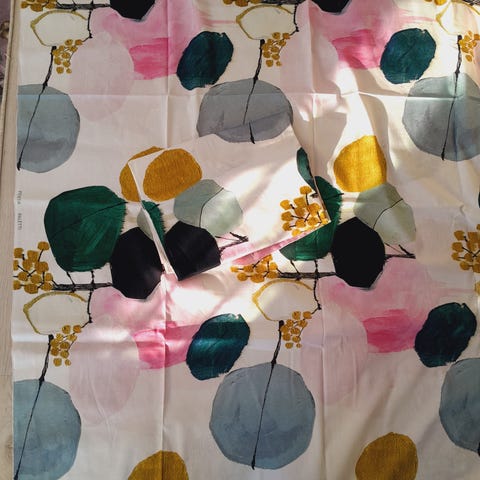 Myydään Pentikin uusi Aamurusko kankaanpala, mitat 150 cm x 200cm. Kankaan suunnittelija Lasse Kovanen. Kangas on 100% paskua puuvillaa. Nouto Lahdesta tai postitus. Postikulut ostajalle.