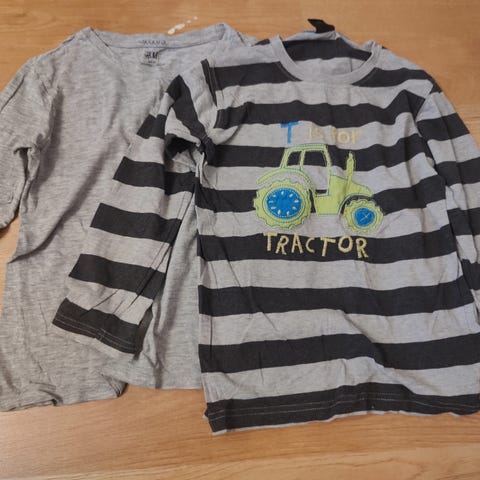 Myydään pakettina paitoja: 2kpl pitkähihaisia trikoopaitoja, 2 kpl t-paitoja ja 1kpl pyjamapaita pitkillä hihoilla. Paidoissa normaaleja käytönjälkiä, mutta edelleen hyvät normaalikäyttöön. Pesty mietotuoksuisilla pesuaineilla.