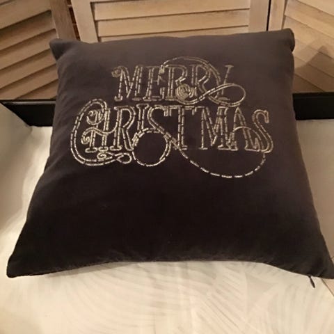 Uusi punainen koristetyynynpäällinen kultakirjailulla, kokoa 40 x 40 cm. 100% puuvillaa. OVH 24,90€.