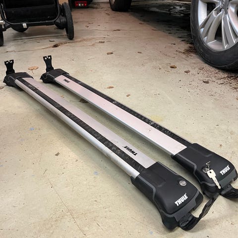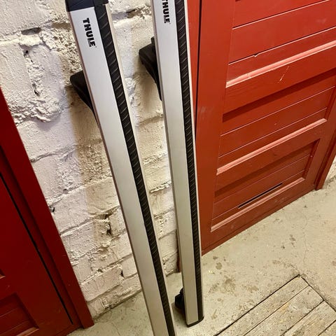 Laadukas ja hiljainen Thule-kattotelinesetti autoihin, joissa on korotetut kattokaiteet (ns. “raised rails”). Kevyesti käytetty, suorat ja ehjät. Valmis pohja suksibokseille, pyörätelineille ym. T-ura-lisävarusteille.
