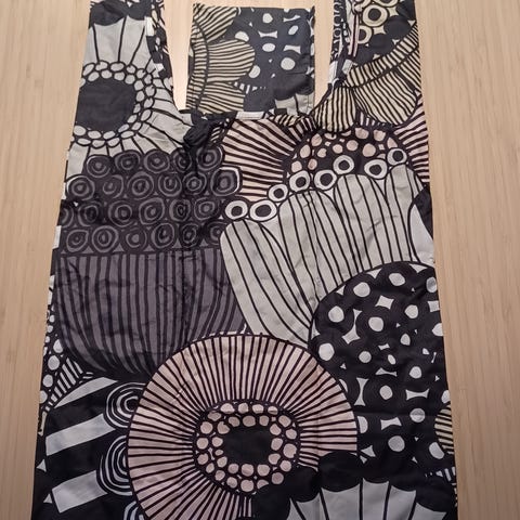 Marimekko Smartbag sininen, uusi. Kassissa pieni säilytyspussi, johon ostoskassin voi taitella.