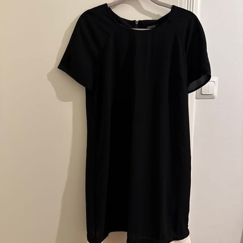 Esmara Arkimekko sinisenä, naisten koko 40. Mekko on valmistettu pääasiassa viskoosista (48%) ja muista materiaaleista kuten polyesteristä ja elastaanista, mikä antaa joustavuutta ja käyttömukavuutta. Mekossa on kolmen neljänneksen hihat ja yksinkertainen, suora malli. Sopii arkipukeutumiseen.