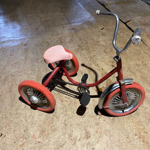 50-luvun lasten pyörä. Huom projekti! Eturengas puuttuu.