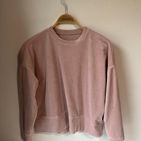 Naisten vaaleanpunainen pitkä paita ,uusi epäsymmetrinen helma ,hiemanröyhelömäiset hihan helman suut,v- kaula aukko L koko