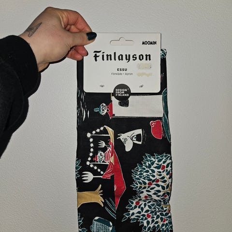 Myydään vielä paketissa olevan Finlayson Moomin sarjaan kuuluva essu.