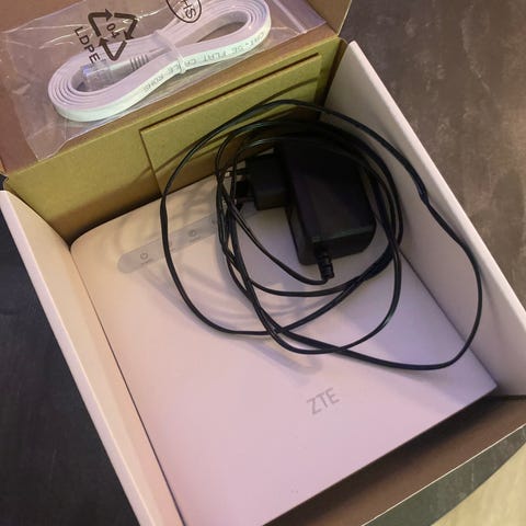 Avaamaton (tai laatikon tarraa hieman raotettu) modeemi.