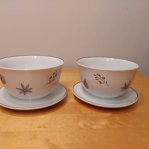 Myydään kaksi hyväkuntoista Arabia Lehto -sarjan keittokuljoa/tarjoilukulhoa. Toinen isompi.