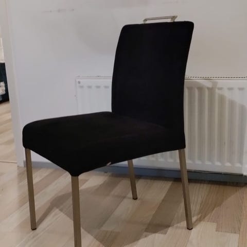Myydään Maskun ruokapöydän tuolit 8 kpl. Siistit ja vähän käytetyt. Metallinväriset jalat ja mustat mokkanahkamaiset kangaspäälliset. Kissatalous.