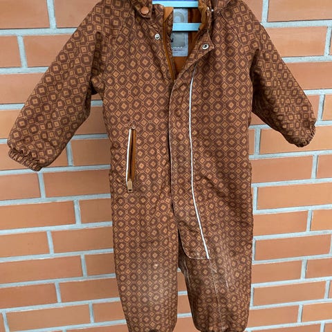 Ollut käytössä yhdellä lapsella yhden talven ajan. Yleisilmeeltään siisti, mutta pientä kulumaa siellä täällä mm. pehmentymää polvissa ja pepussa. Haarasaumassa polvitaipeiden kohdalla kulumaa ja pienet reijät päälikankaassa. Jätin paikkaamatta, jotta seuraava saa laittaa mieleisensä laastaroinnit:)