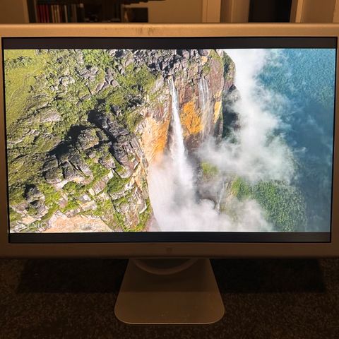 Apple Cinema Display 20 tuuman näyttö, hopeanvärinen, alumiinirunkoinen. Näyttö soveltuu tietokoneen lisänäytöksi tai korvaavaksi näytöksi. Mukana virtalähde ja johdot.