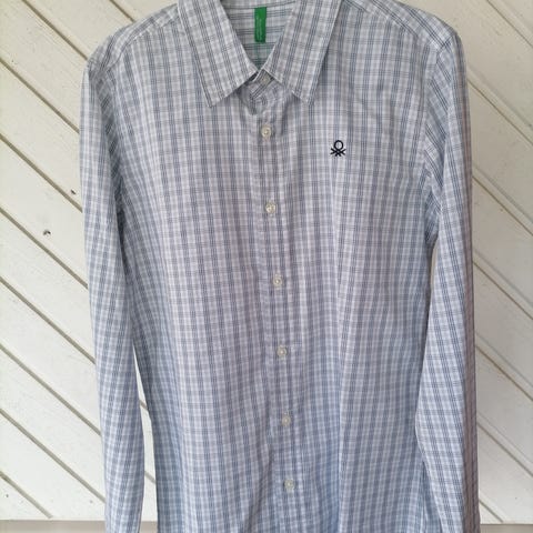 Beshall merkkinen kauluspaita puhvihihoilla. Vähemmän käytetty....napannut ilmeisesti säilytyksessä jostain hailakkaa jälkeä selkäpuolelle. Muuten oikein siisti.