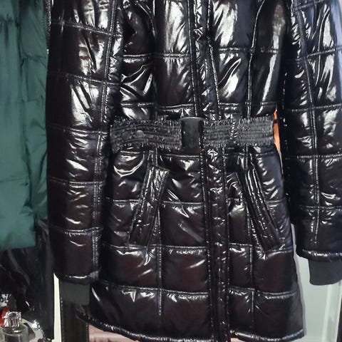 Miss Me Muu takki mustassa värissä, naisten koko 44. Takki on valmistettu keinonahkamateriaalista ja siinä on vetoketjukiinnitys edessä. Takissa on pyöreä kaulus ja pitkä hiha.