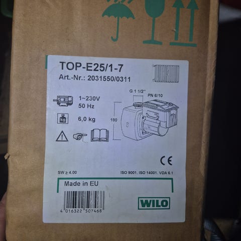 WILO TOP kiertovesipumppun korjaus sarja, väriltään vihreä, valmistettu EU:ssa. Mukana asennus- ja käyttöohjeet sekä tarvittavat tiivisteet ja kiinnitystarvikkeet.