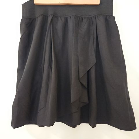 H&M musta naisten samettinen hame, koko M. Valmistettu polyesterin ja elastaanin sekoituksesta. Hameessa on koristeelliset saumat edessä.