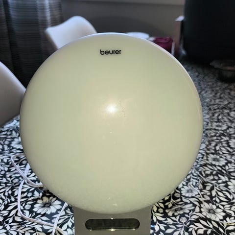 Uusi ja laadukas kirkasvalolamppu syksyn harmautta loiventamaan ja mielialaa nostamaan. Merkki Baurer ja malli SR TL I. Ohjekirjassa tarkat ohjeet laitteen käytölle. Virran kulutus olematon, ainoastaan 5 wattia. Laitteen käyttö ei häiritse esim. tietokoneen käyttöä, koska vilkaisu valoon silloin tällöin riittää silmien verkkokalvoille, joiden kautta valo vaikuttaa. Pisin yhtämittainen käyttöaika kaksi tuntia päivässä.