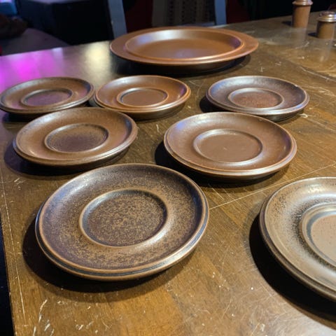 Ruskeat : muki, aluslautanen ja leipälautanen 18€ / setti