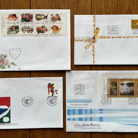 Seteleitä, postimerkkejä, keräilykortteja, kolikoita ja ensipäiväkuoria