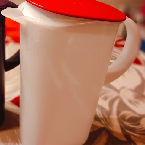 Helppokäyttöinen, ihana uusi Tupperware Samba-kannu 2,1 l (molemmat otettu pussista kuvausta varten). Samba-kannu on suunniteltu myös heille, joilla on heikommat käsivoimat. Kannen saa auki/kiinni painamalla koko kädellä kannen päistä. Kuva 2 kansi kiinni ja kuva 3 kansi auki. Hinta 16 €/kpl.