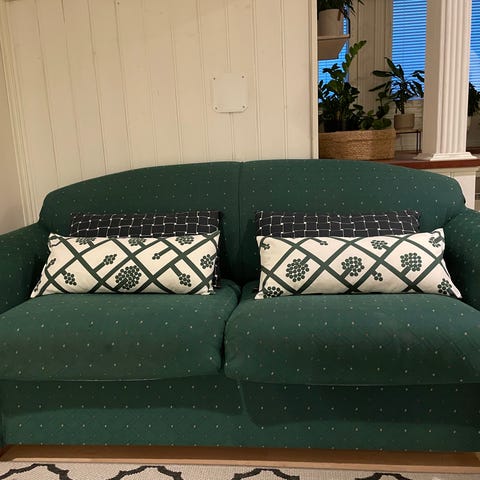 Vuodesohva, jonka saa käännettyä kahdeksi eri malliseksi sohvaksi ja sängyksi. Ollut parvekkeella (lasitettu) joten aurinko vaalentanut ja keskelle jäänyt tummempi osa. Ollut viimeisen vuoden vierassänkynä ja toimii erinomaisesti. Pohjan ohut musta kangas on revennyt mutta ei näy käytössä. Erinomainen parvekkeelle tai vieraskäyttöön. Mukava nukkua ja istua. Haku Järvenpäästä. Tarjoa.