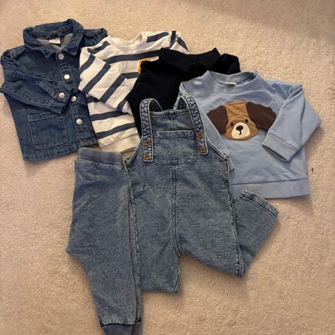 Erittäin siistikuntoinen vaatesetti koossa 74. Merkkeinä mm. Lindex, hm,