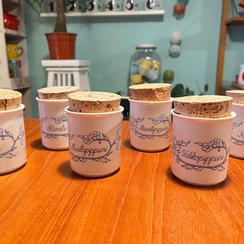 Kaksi arabian ehjää maustepurkkia;kaneli ja maustepippuri